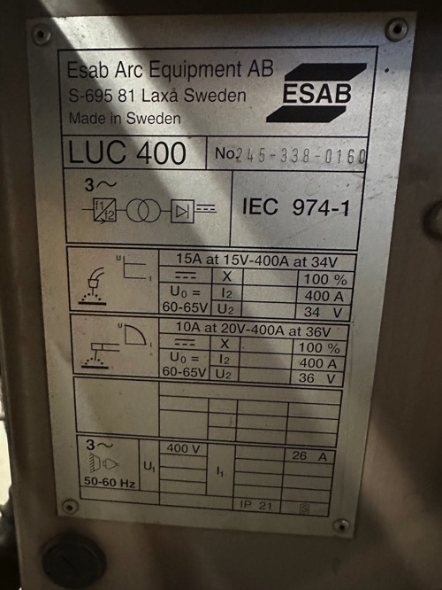 ESAB LUC 400 mit 100%ED, Vorschub A10-MED 44